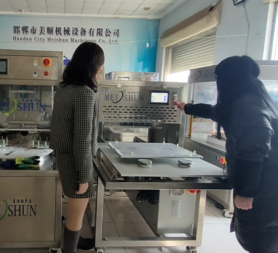 美順帶領客戶試驗超聲沖擊槍